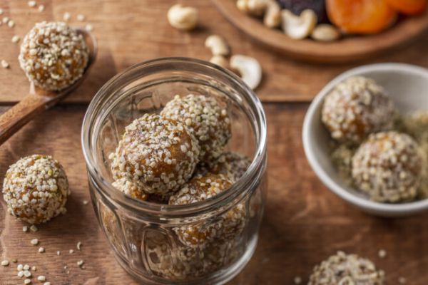 Bouchées énergétiques au chanvre, dattes, abricots secs